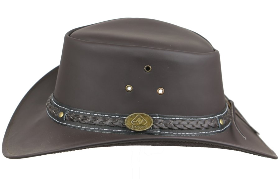 Frisco od RUGGED EARTH je klasický klobúk so stabilným tvarom za skvelú cenu.Hovädzia impregnovaná koža je odolná voči počasiu. Praktické vetracie očká pre ľahké odvetranie v horúcich dňoch. Vnútri klobúka sú malé otvory, ktoré umožňujú jednoduchú montáž remienka pod bradu. Je ozdobený exkluzívnym koženým pásikom z pravej kože.