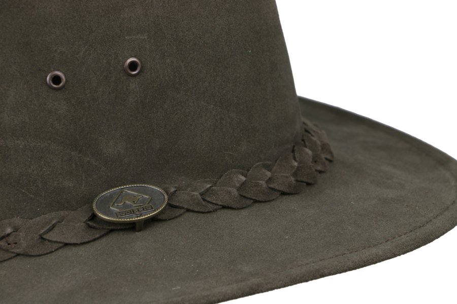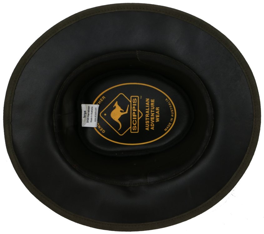 Narrabeen je ľahký a vzdušný klobúk so stabilným tvarom z brúsenej kože s hladkým zamatovým povrchom. Je vybavený praktickými vetracími očkami pre ľahké odvetranie v horúcich dňoch. Ozdobený pleteným pásikom z pravej kože a kovovým logom SCIPPIS.